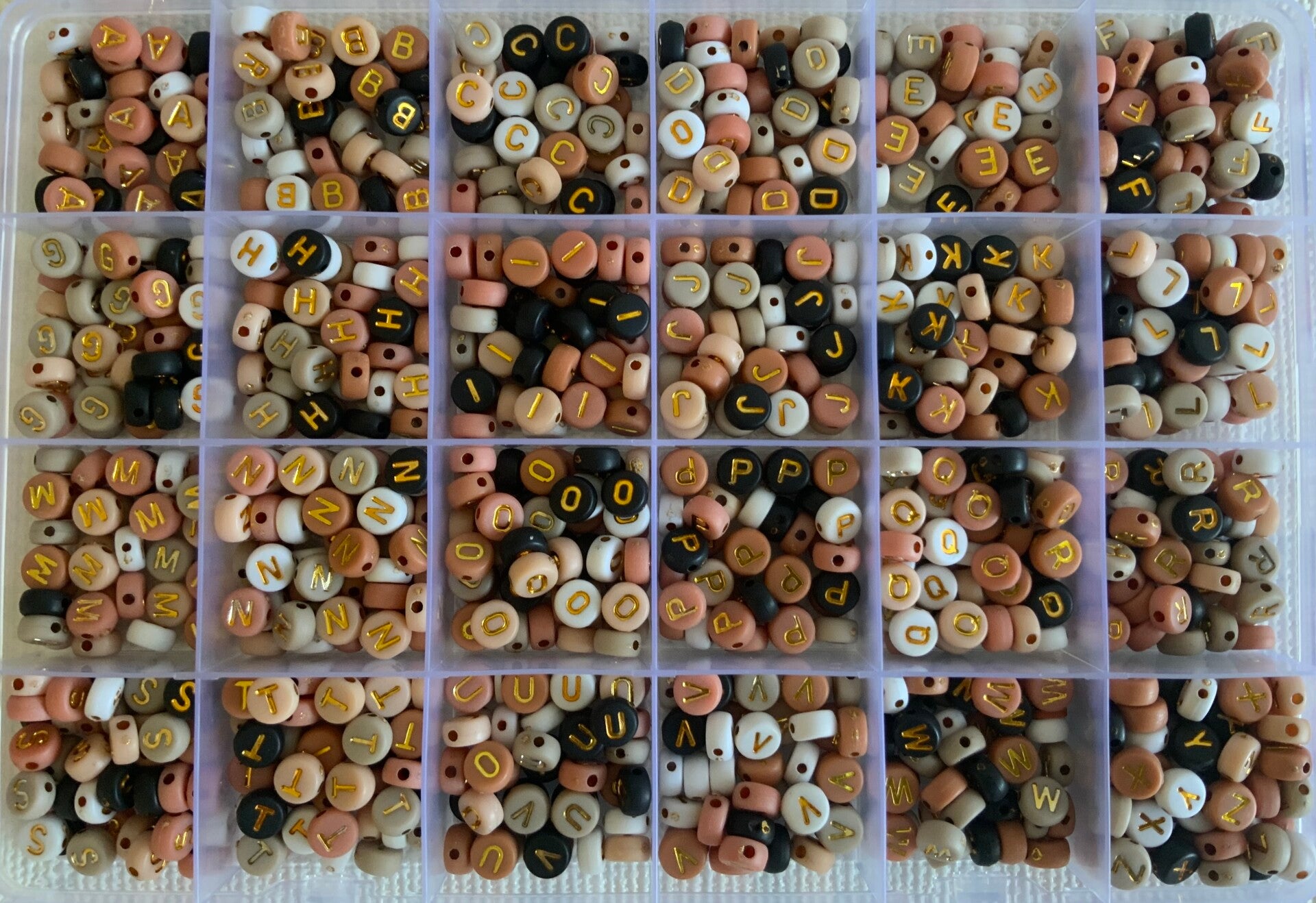 Omschrijf de kleur en/of de vorm van het figuurtje en de letterkralen.